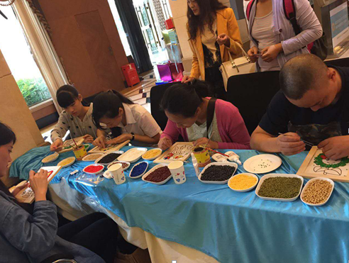 親子DIY,小朋友和家長們正在認真制作五谷雜糧畫DIY。還有什么比在團圓佳節,和自己的孩子一起努力,為他的書房添一件藝術品更讓人感覺溫暖的事情呢?