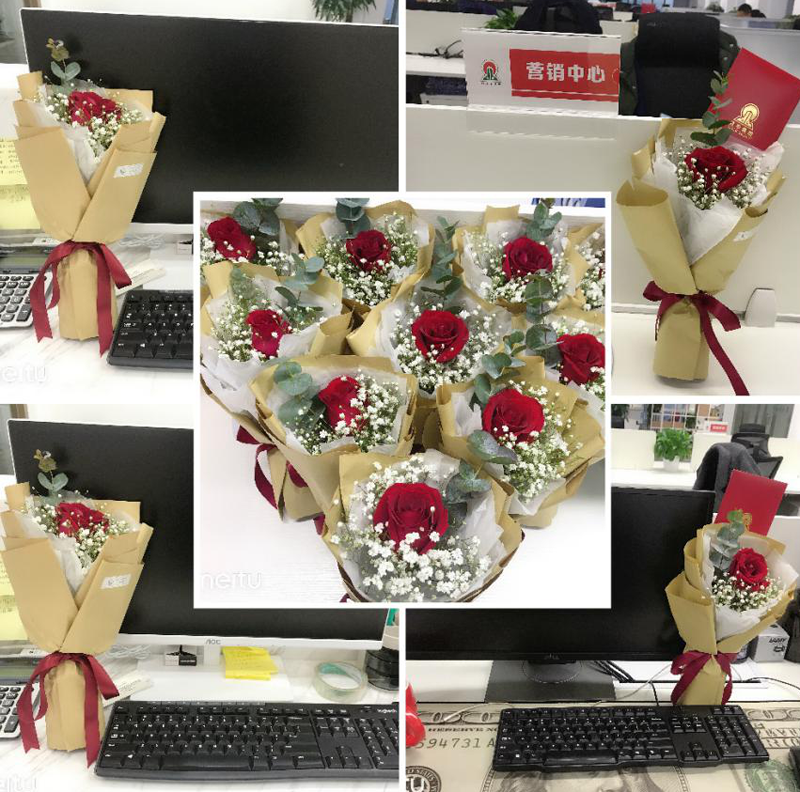 佳樂集團職業女性作為“半邊天”,巾幗不讓須眉,奉獻著自己的智慧和汗水,成為佳樂最美的風景線。今天,在這個特殊的日子,佳樂集團領導早早在公司門口守候,為每一位前來上班的女員工獻上鮮花及禮物,送上真摯的節日祝福。