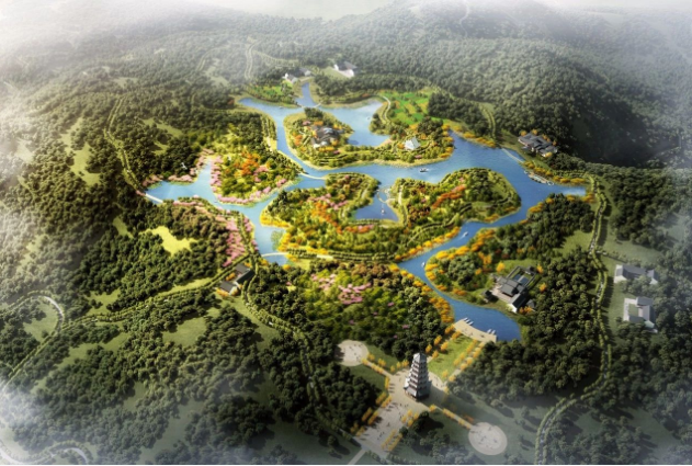 規(guī)劃空間上特別注重山、湖、江的關(guān)系,方山景區(qū)核心與周邊小鎮(zhèn)功能區(qū)的關(guān)系,建立山上朝圣攬勝、山下游玩健身、江上觀景的大方山文旅體系,以生態(tài)優(yōu)先、文化塑魂的設(shè)計(jì)理念,整體構(gòu)建大方山景區(qū)。以 5A 景區(qū)為設(shè)計(jì)標(biāo)準(zhǔn),以佛文化為核心,打造聯(lián)動(dòng)山景、湖景、江景的大方山旅游體系。